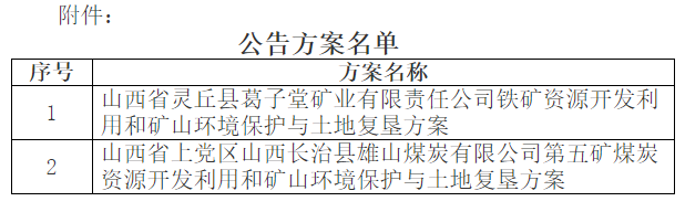 山西省自然資源廳對(duì)《山西省靈丘縣葛子堂礦業(yè)有限責(zé)任公司鐵礦資源開發(fā)利用和礦山環(huán)境保護(hù)與土地復(fù)墾方案》等2個(gè)方案的評(píng)審結(jié)果進(jìn)行了公示,公示結(jié)果無異議,準(zhǔn)予通過,現(xiàn)予以公告。