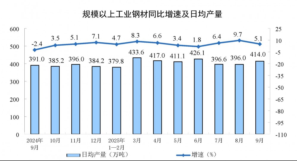 國(guó)家統(tǒng)計(jì)局?jǐn)?shù)據(jù)顯示,2025年9月份,全國(guó)規(guī)上工業(yè)鋼材產(chǎn)量12421萬(wàn)噸,同比增長(zhǎng)5.1%;2025年1-9月份,全國(guó)規(guī)上工業(yè)鋼材產(chǎn)量110385萬(wàn)噸,同比增長(zhǎng)5.4%。