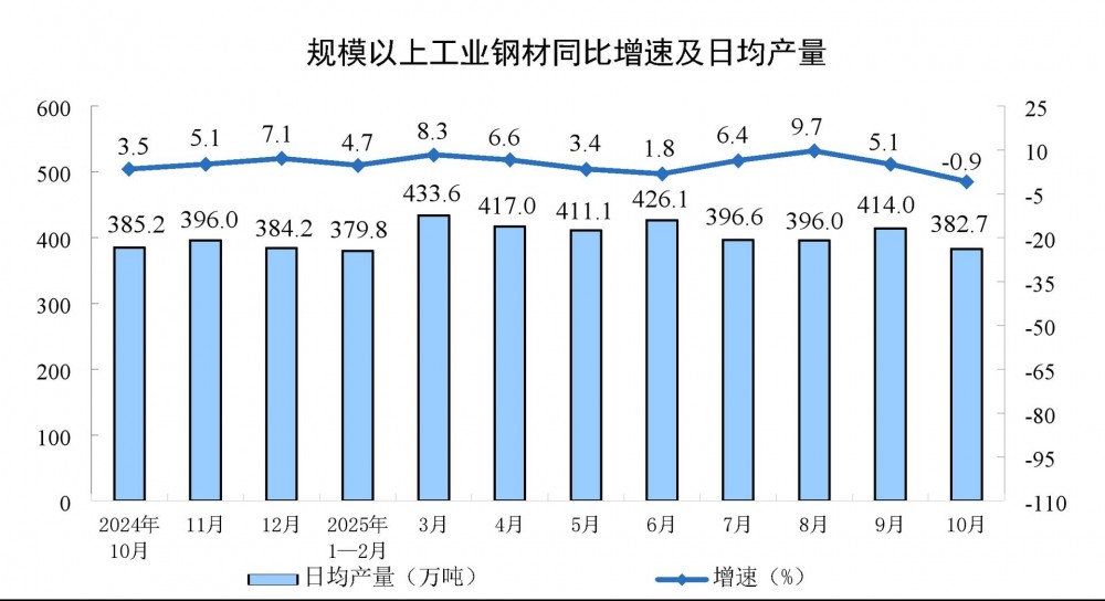 國家統(tǒng)計局數(shù)據(jù)顯示,2025年9月份,全國規(guī)上工業(yè)鋼材產(chǎn)量11864萬噸,同比下降0.9%;2025年1-9月份,全國規(guī)上工業(yè)鋼材產(chǎn)量121759萬噸,同比增長4.7%。